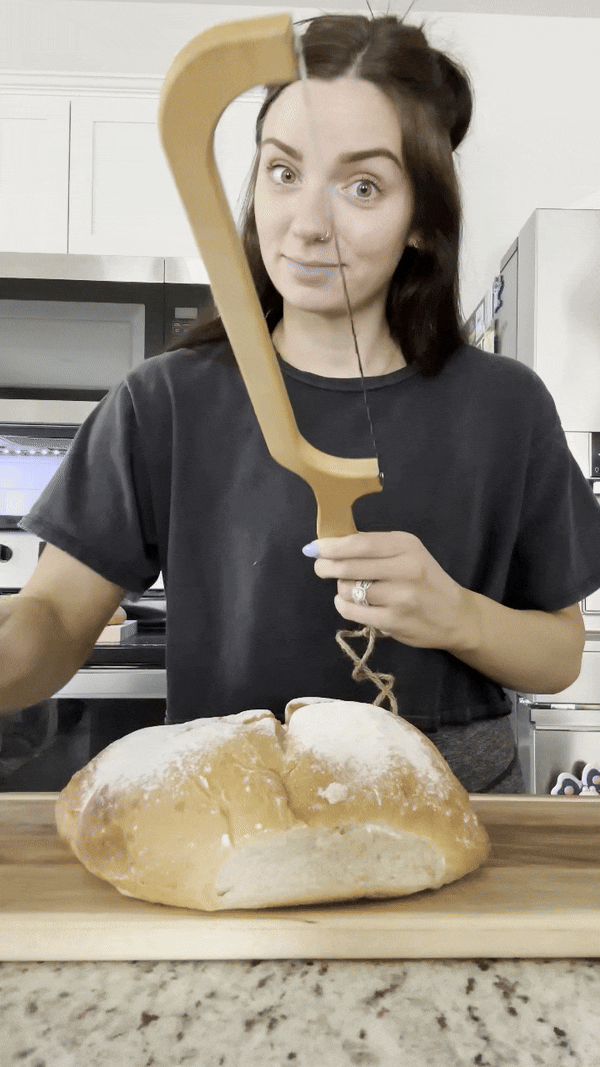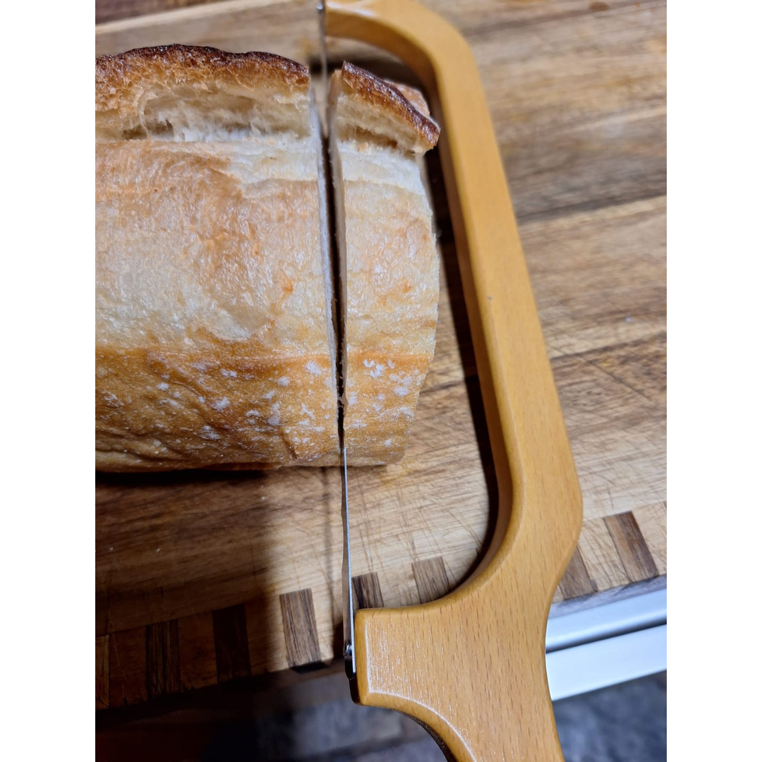 “Slicing thick or thin has never been easier! The knife is so sharp that it cuts smoothly without crushing the bread. Just be careful not to get your fingers too close.”