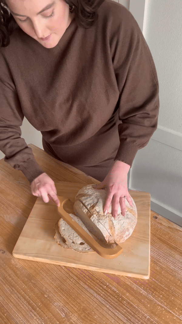 “This knife has become a true staple in our kitchen. Thin slices or thick slices — both come out effortlessly. With crusty loaves, lifting the bread slightly while cutting works perfectly!”